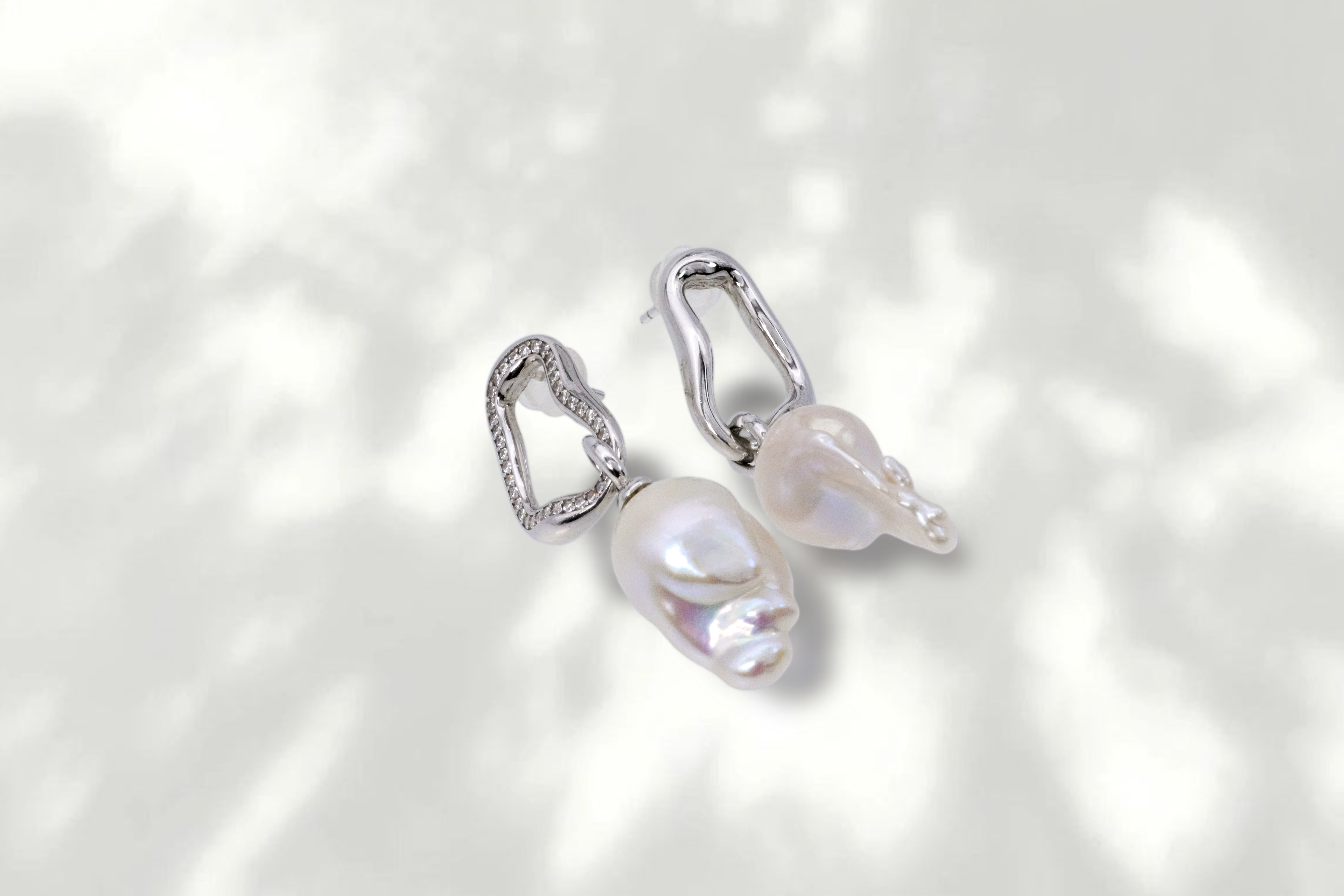 (JR-ER-0021) 淡水真珠 ピアス ホワイト バロック 16.0mm~19.0mm(幅)
