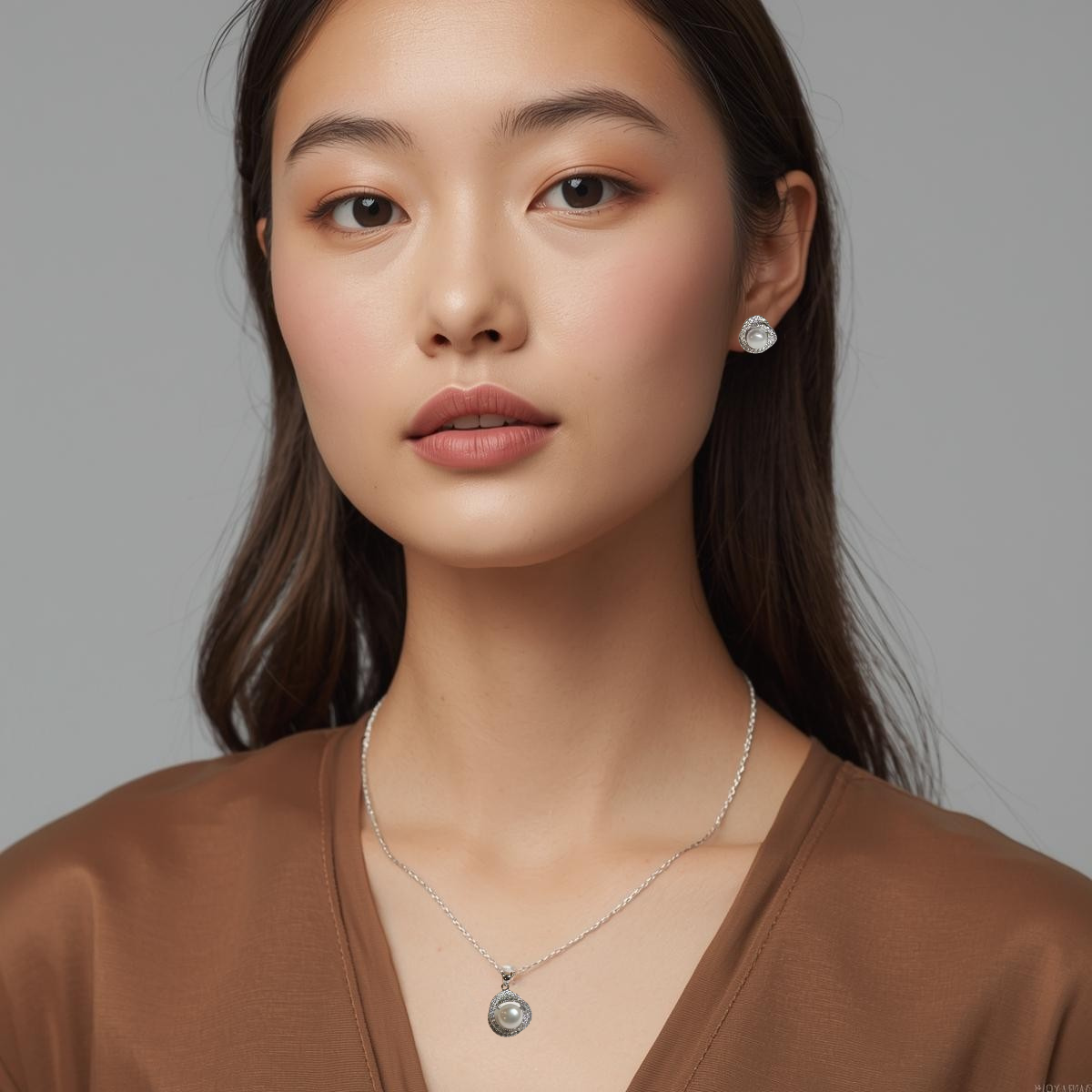 品質の高い天然淡水真珠を使用した、シンプルでありながら優雅な光沢のネックレスとピアスのセット商品です。