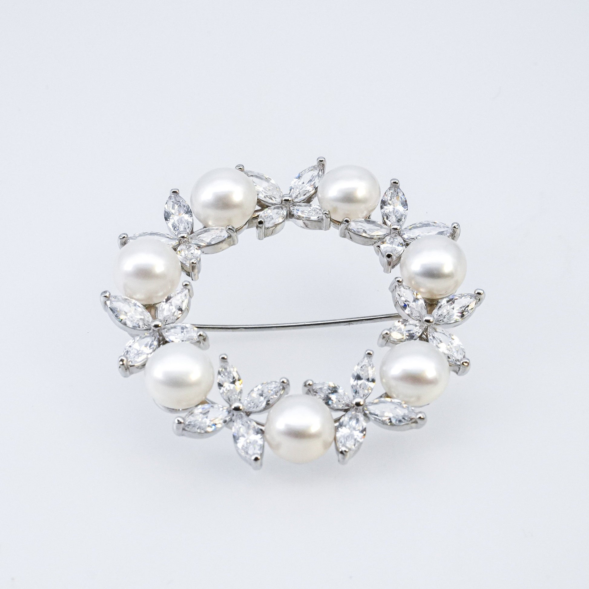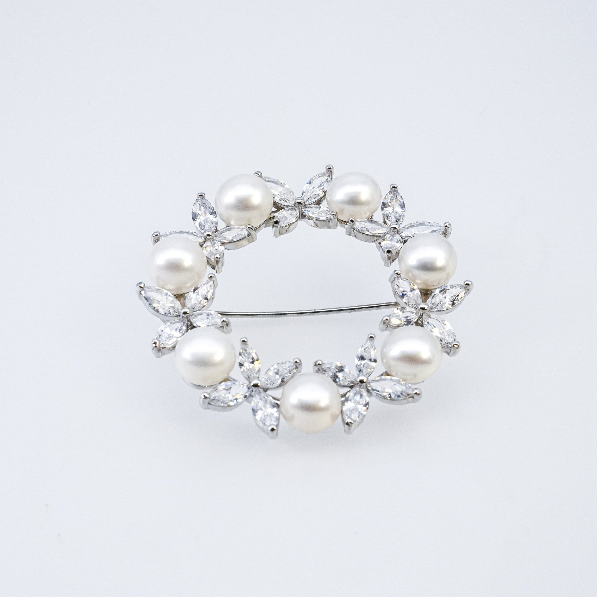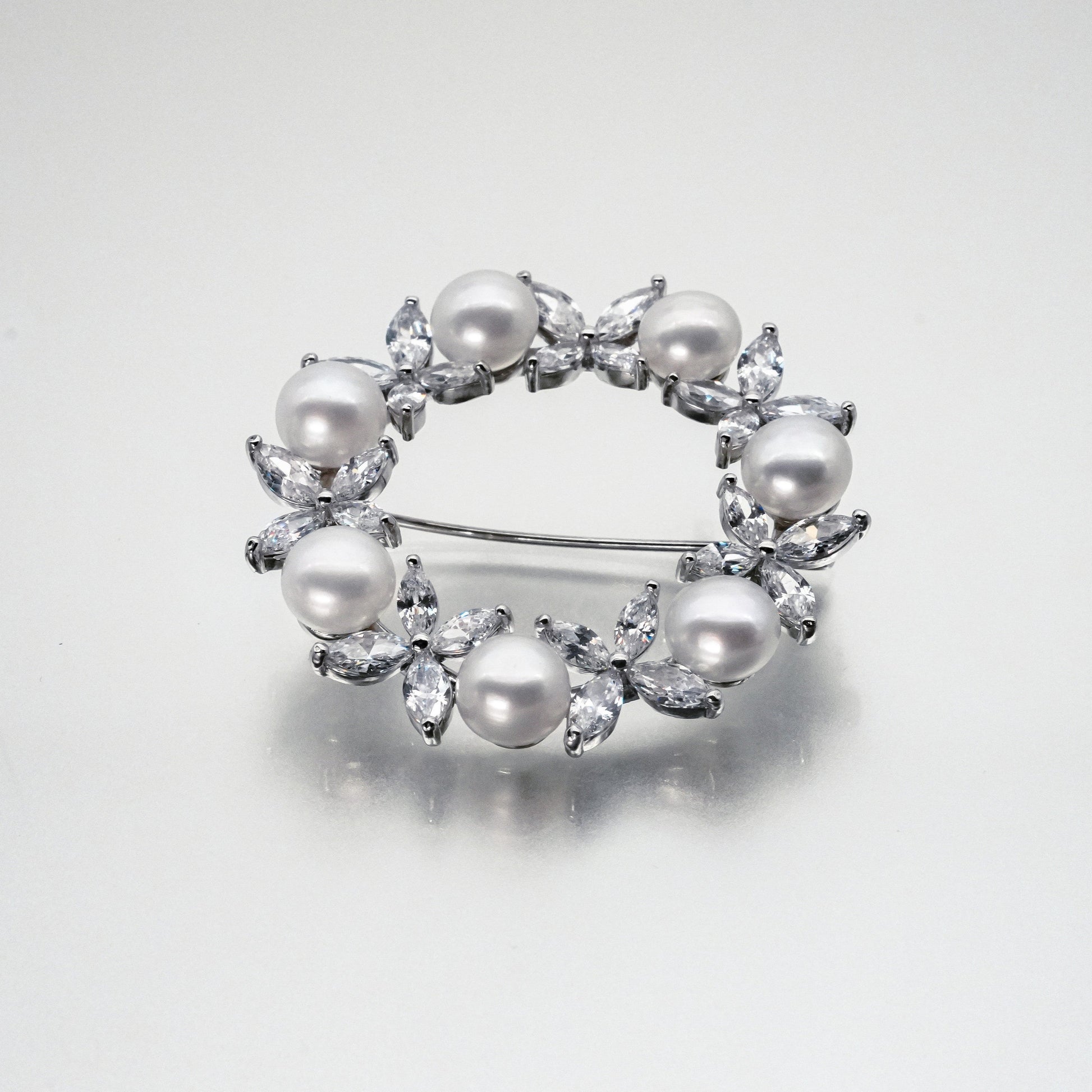 メージしたデザインに、繊細な天然淡水真珠をあしらったペンダントトップ(ネックレス)兼ブローチ。ツーウェイ仕様で、シーンに合わせて首元や胸元を上品に彩ります。清楚なホワイトの真珠が、洗練された女性らしさを演出し、特別な日にも日常にも馴染む逸品です。