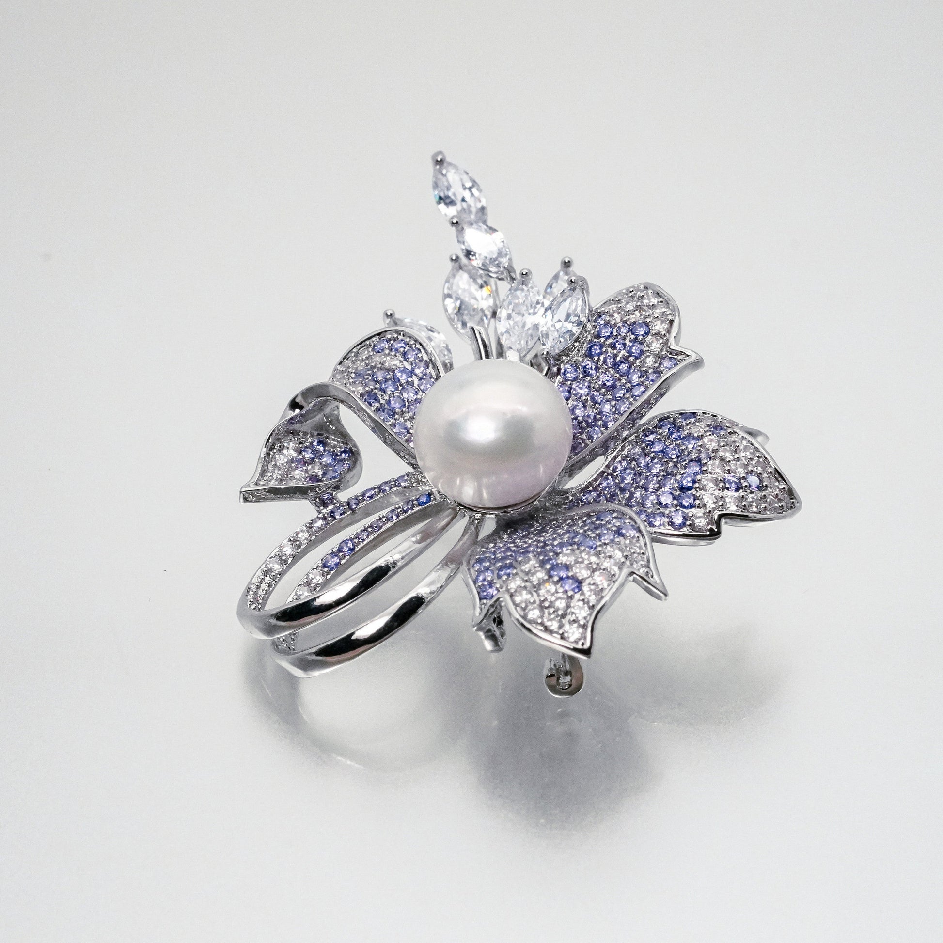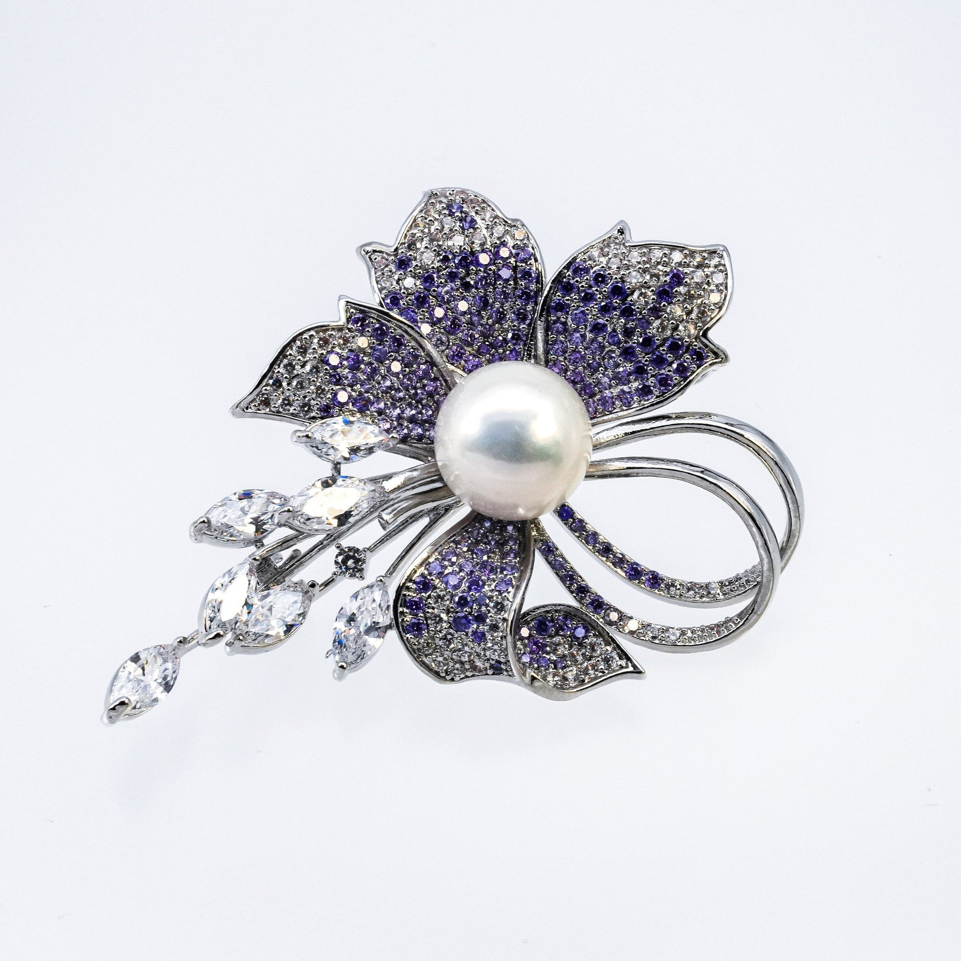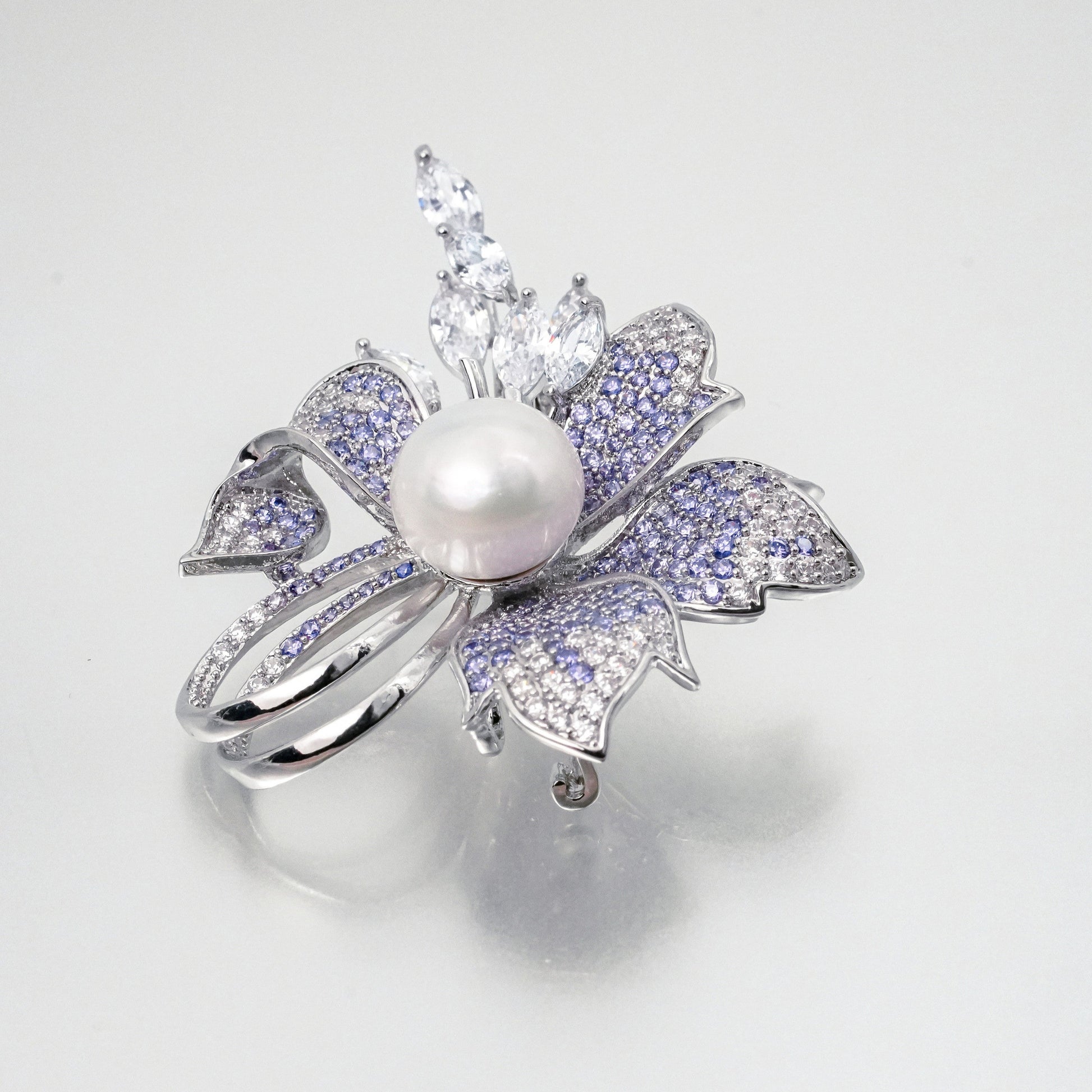 上品な花モチーフにあしらわれた天然淡水真珠が、優雅な輝きを放つペンダントトップです。繊細なデザインは、日常から特別な場面まで幅広く活躍し、女性らしい柔らかな印象を演出します。白く清潔感のある真珠が顔周りを明るく彩り、ブローチとしてもお使いいただける多機能な逸品です。