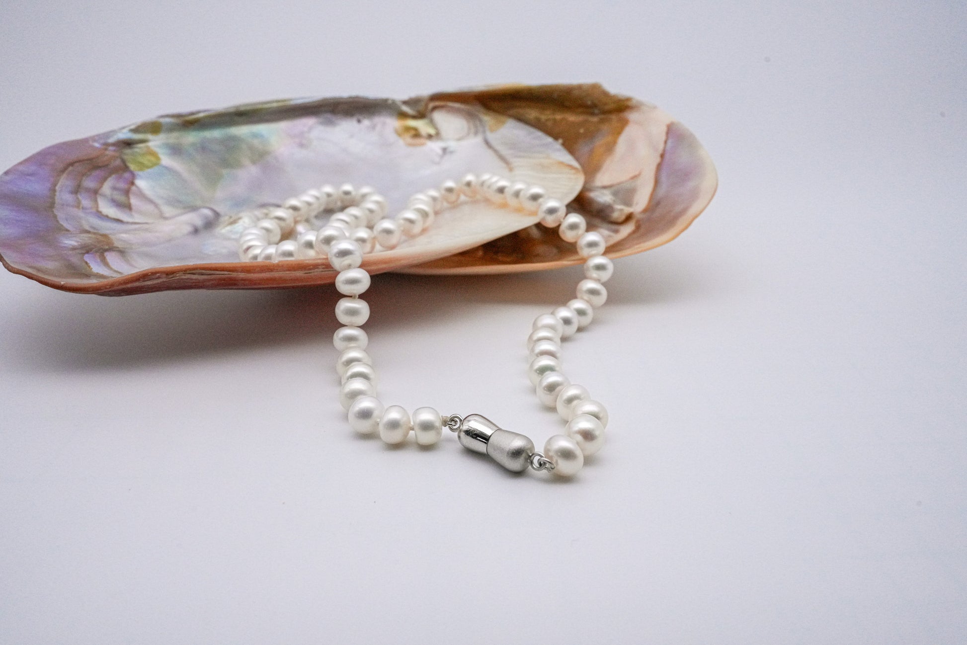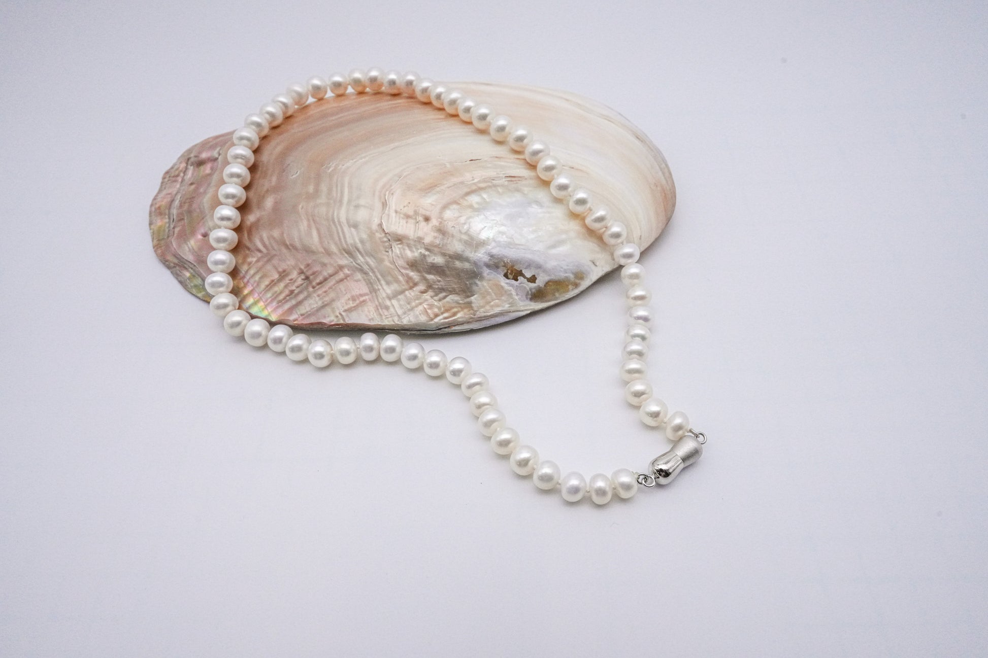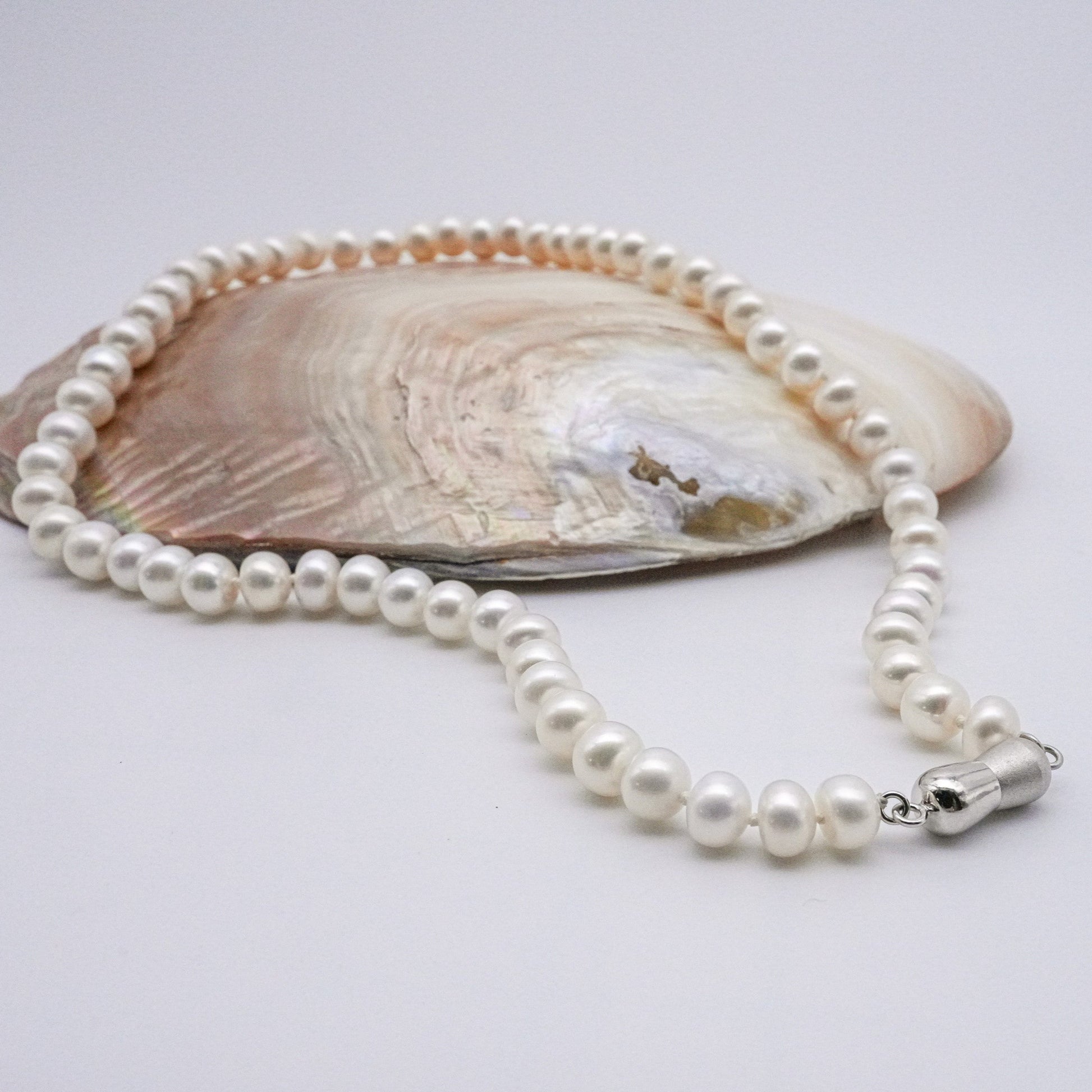 このネックレスは、美しい艶と輝きを放つ淡水真珠を使用し、冠婚葬祭などの特別な場面での着用に最適です。上品なデザインで、華やかさと気品を演出します。パールの輝きであなたの魅力をさらに引き立てること間違いなしです。