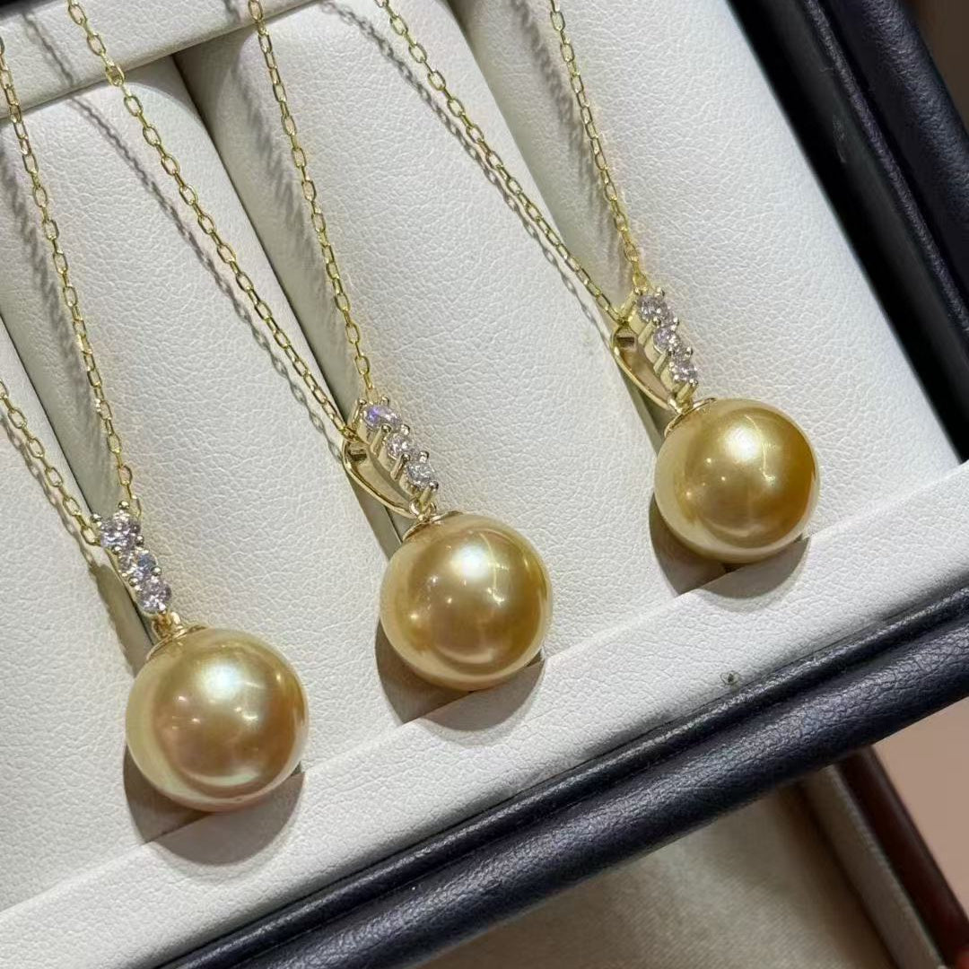 深みのあるゴールドカラーが美しく輝く、フィリピン産の天然白蝶真珠を使用したネックレス。珠のサイズは12.0mmから13.0mmと存在感があり、フォーマルから日常まで上品に装いを引き立てます。上質な素材と丁寧な仕上げが、長く愛用いただける洗練された一品です。
