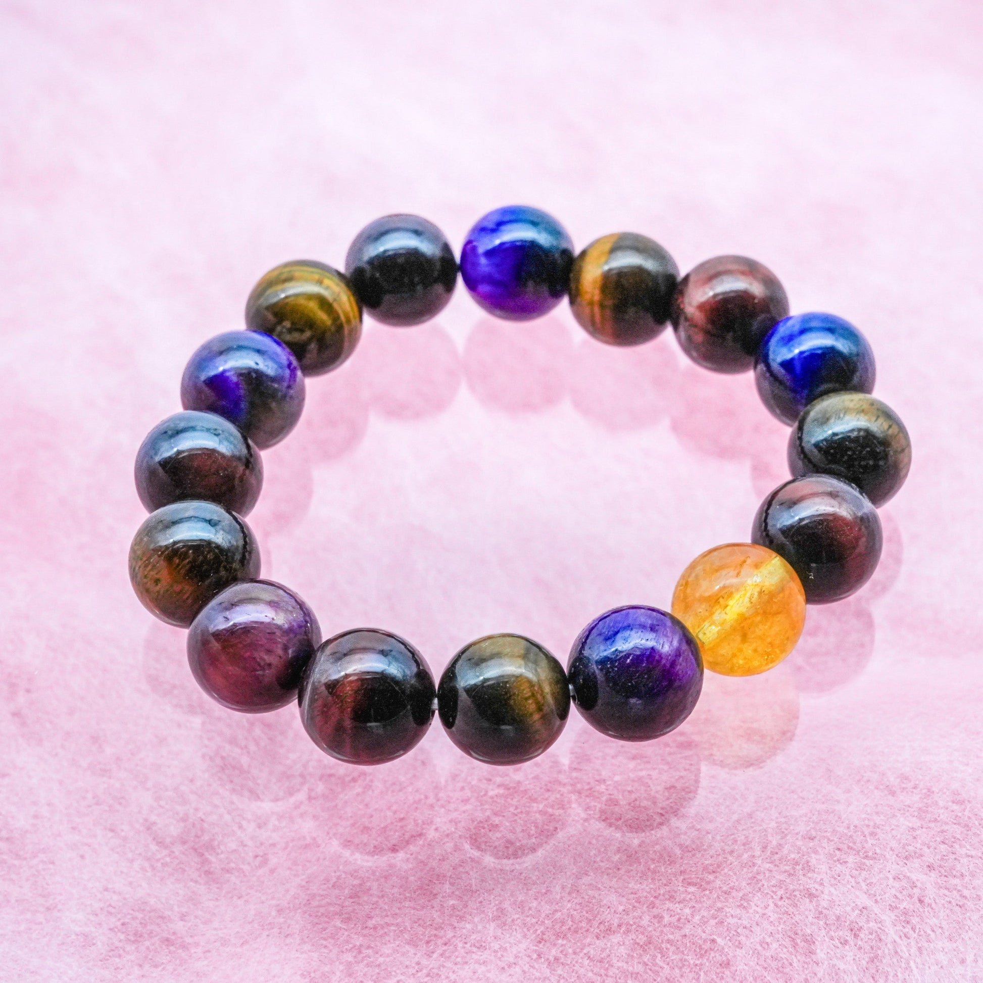 タイガーアイと言うとキャラメルカラー(黄褐色の縞模様)が一般的ですよね。カラーが豊富なので、区別するためにイエロータイガーアイと呼ばれることもあります。