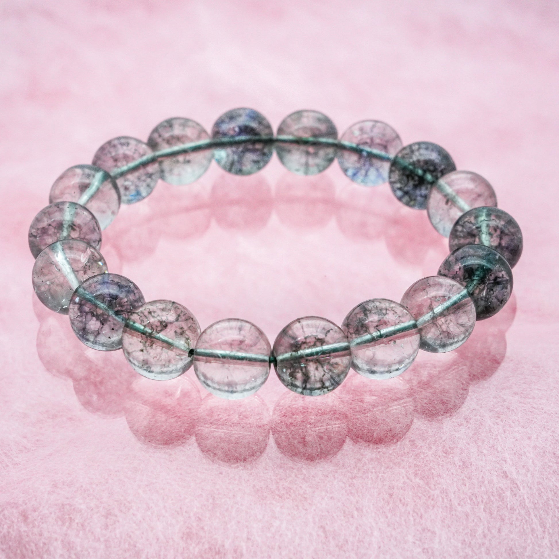 (JR-BR-0009) グリーンファントムクォーツ(緑幽霊幻影水晶)ブレスレット 19~20cm