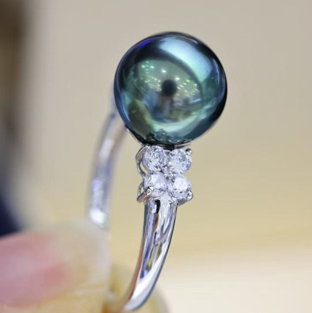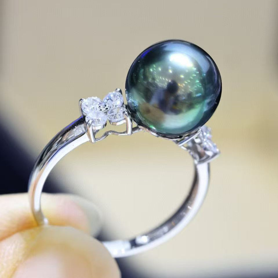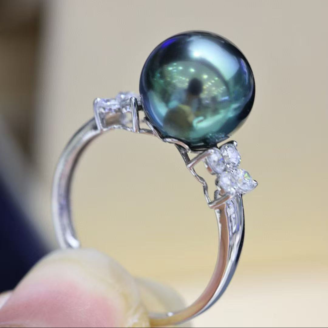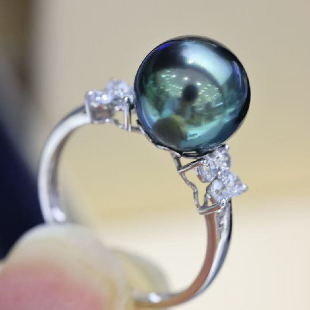 (JR-RI-0014) タヒチ産黒蝶真珠 指輪 ピーコックグリーン 10.0mm~11.0mm
