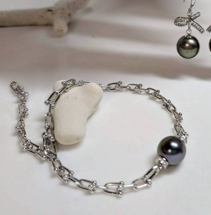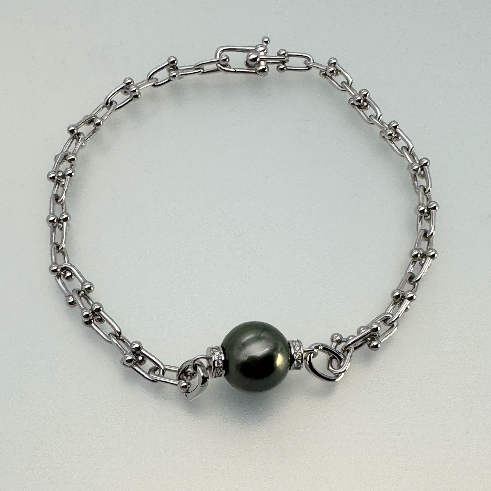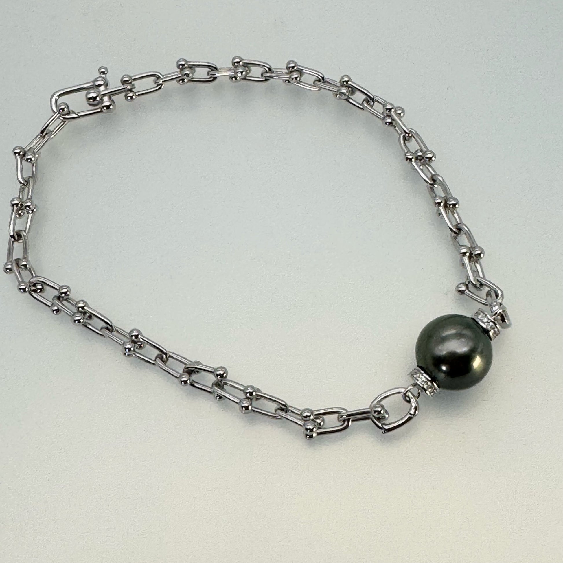 大粒で優雅な黒蝶真珠を使用したブレスレットです。エレガントなデザインは、洗練された装いにやさしい輝きを添えます。特別な日のアクセントとして、また日常に上品な存在感をもたらす上質なジュエリーです。