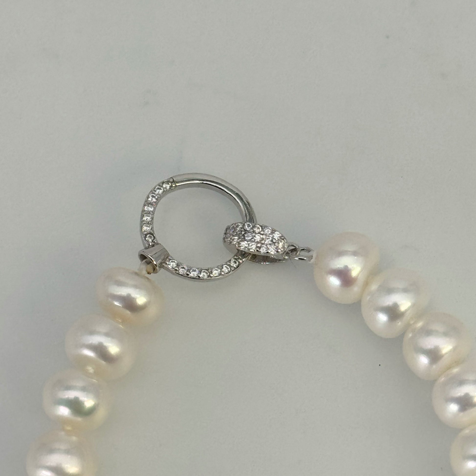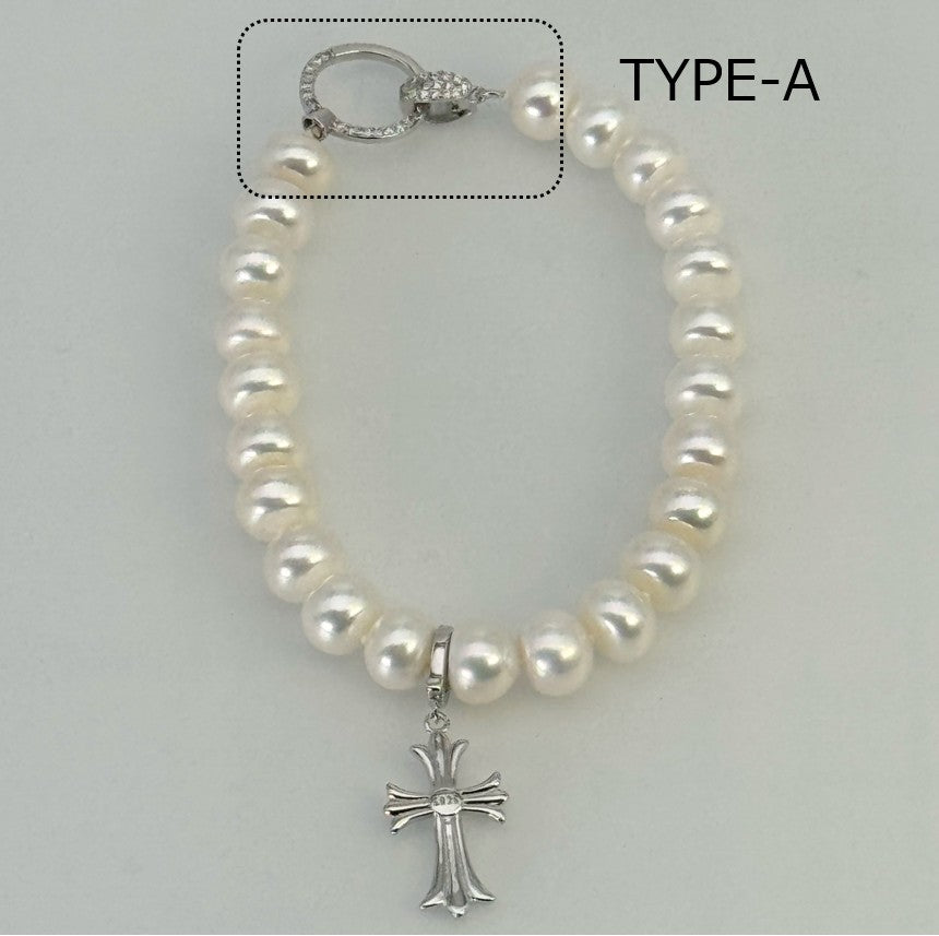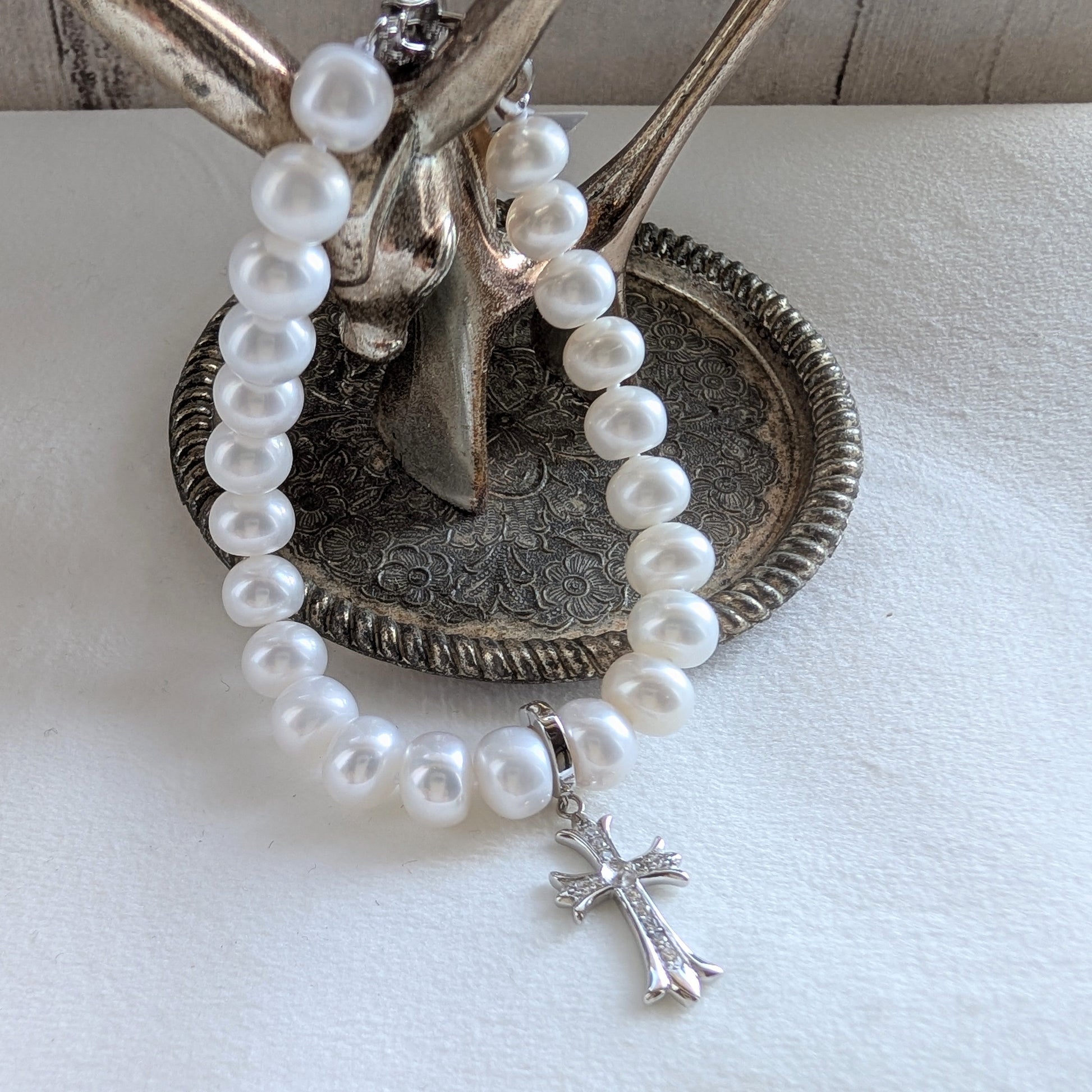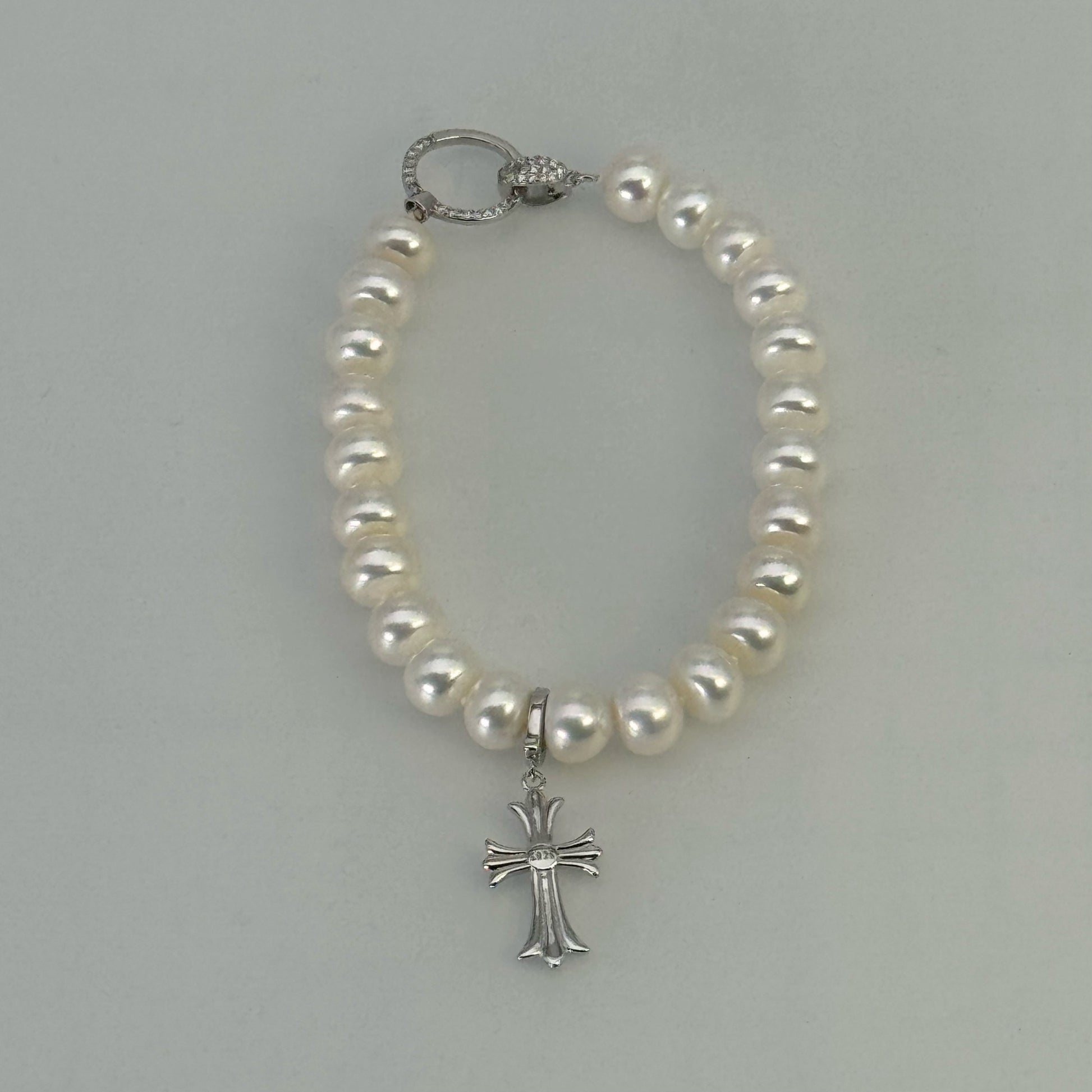 淡水真珠 ホワイト 十字架 ブレスレット 16~17 cm S925 (JR-BR-0036)