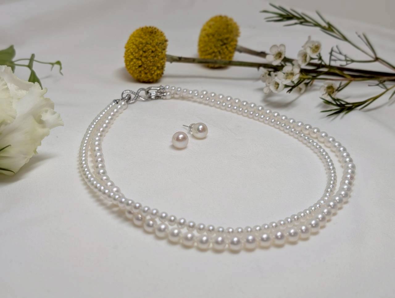 淡水真珠 ネックレス ラウンド ホワイト 4.5mm, 5.5mm 長さ:40.0cm, 42.0cm(JR-NL-0060)