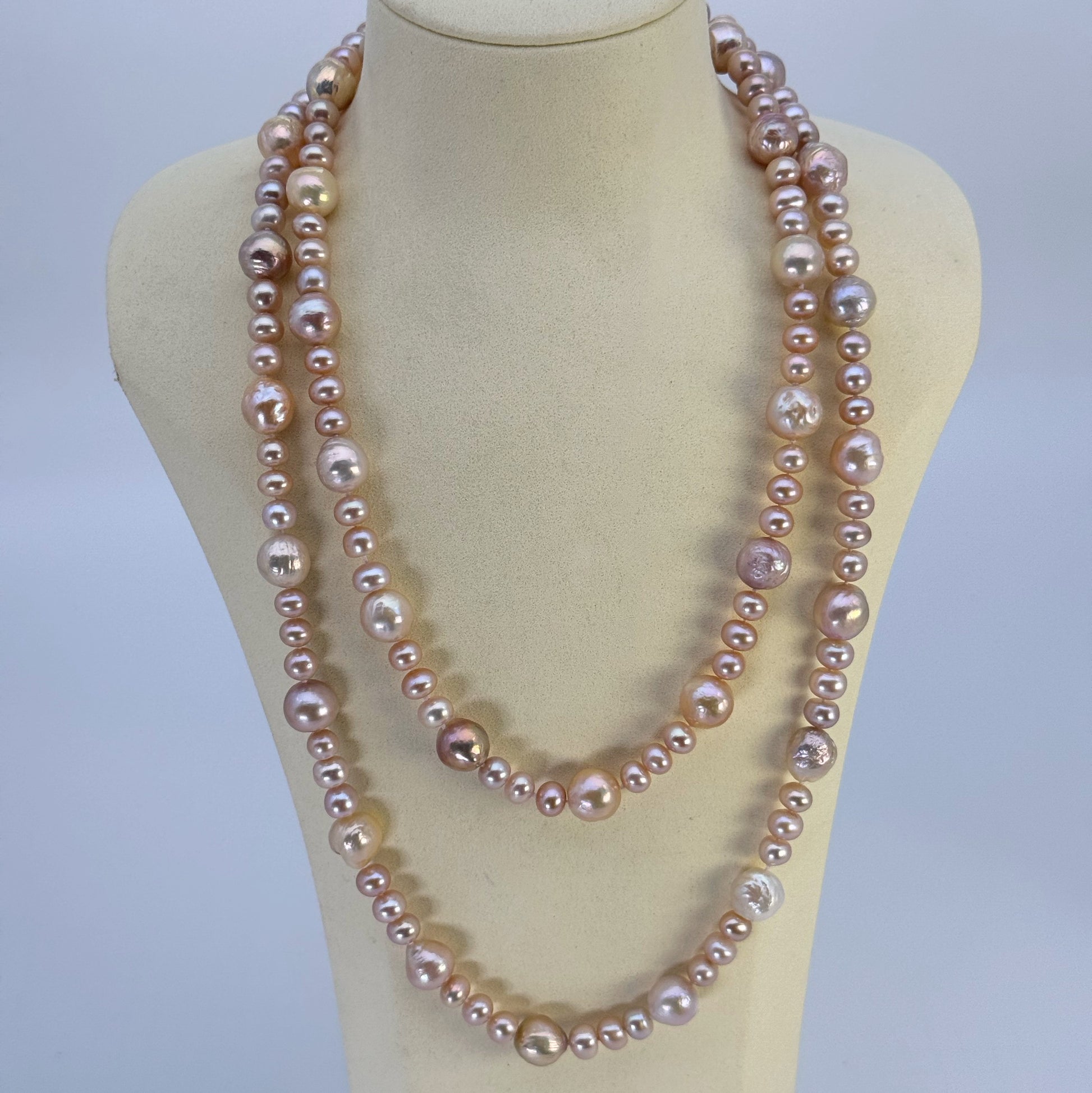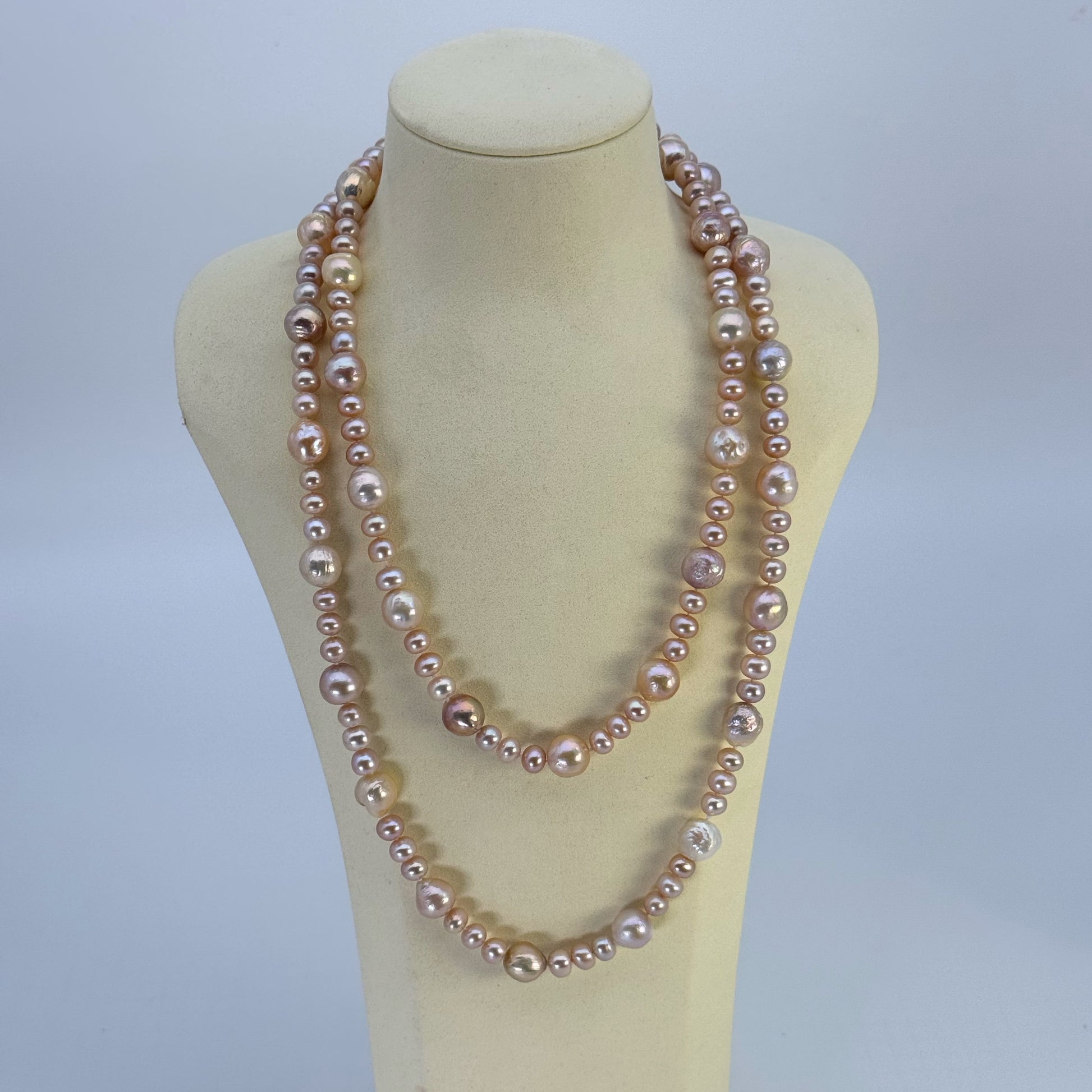 遊び心あふれるマルチカラ―の淡水真珠ネックレスが登場!大粒真珠を贅沢に並べ、120cmの長さでゆったりと首元を彩ります。存在感抜群で、どんなコーディネートにも華やかさと個性をプラス。パーティーやお出かけがもっと楽しくなる一品です。