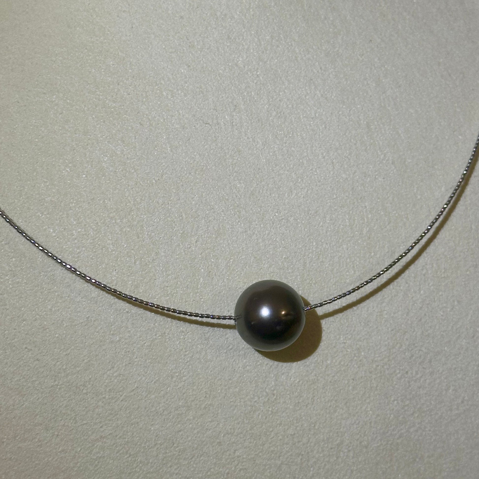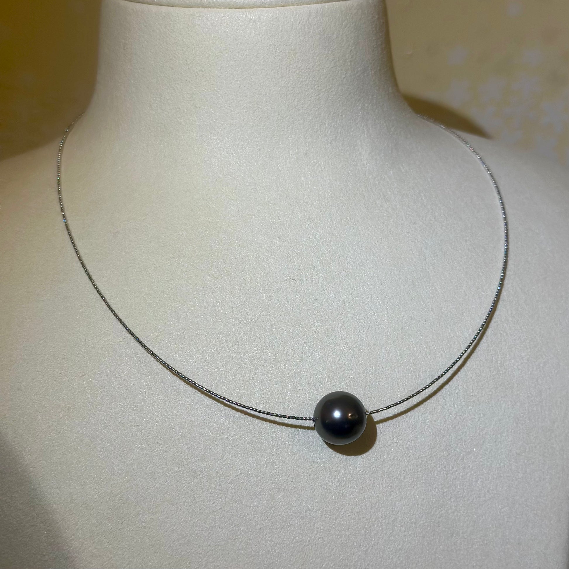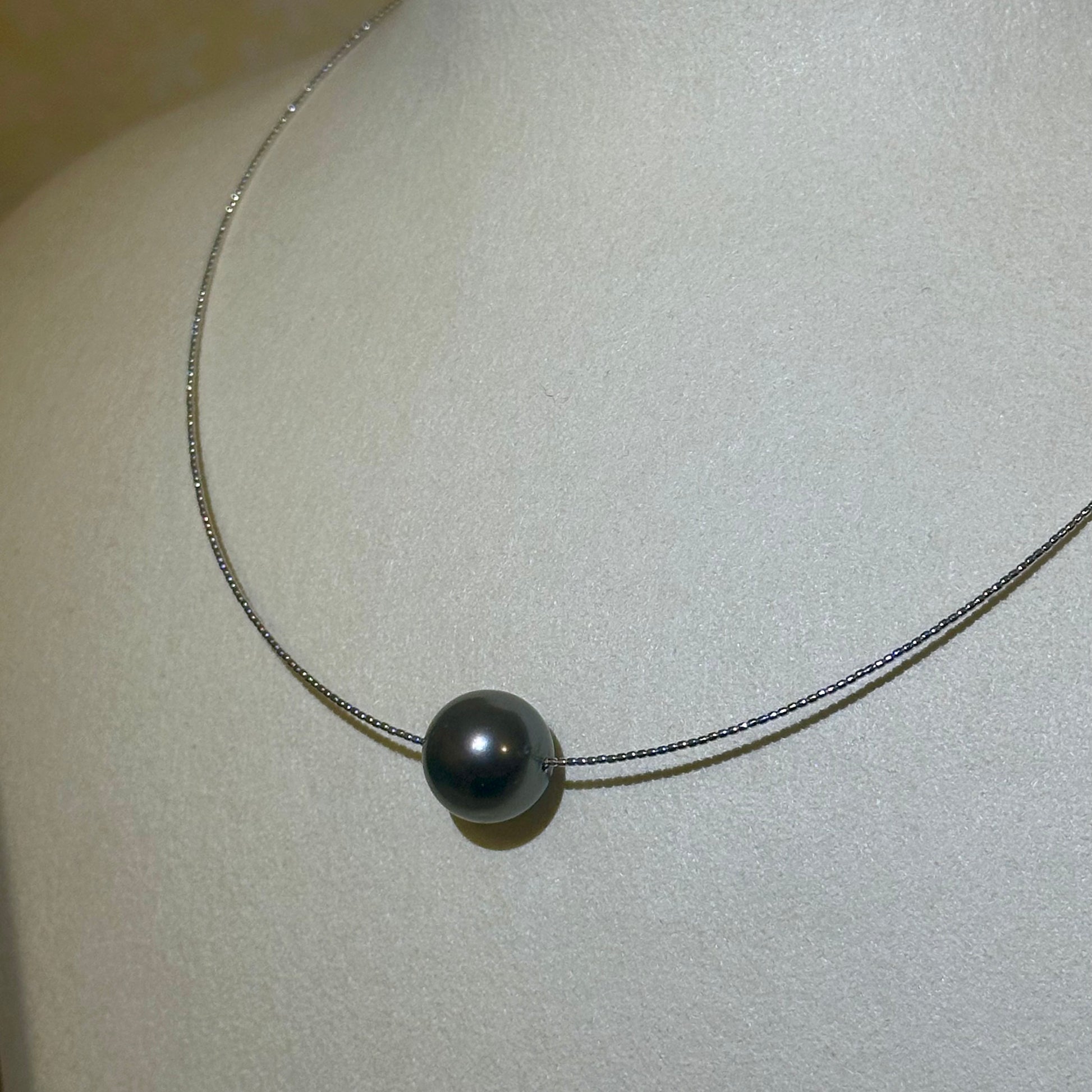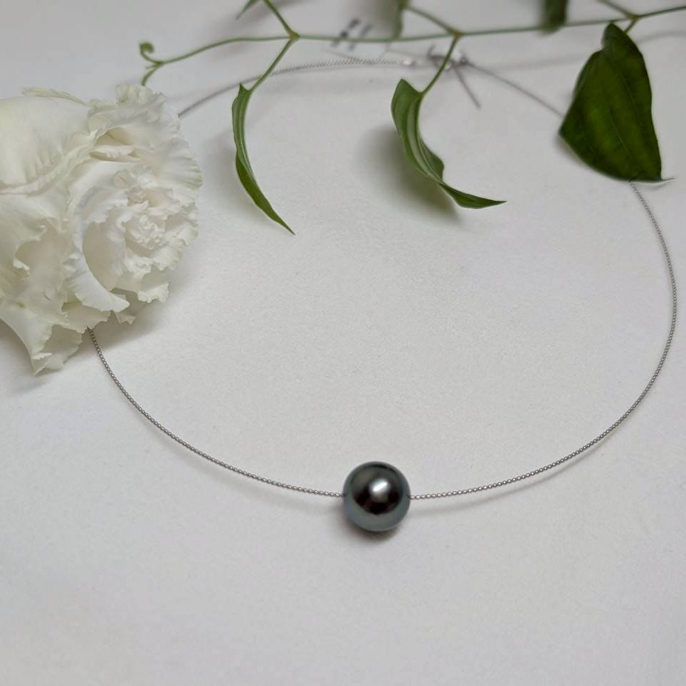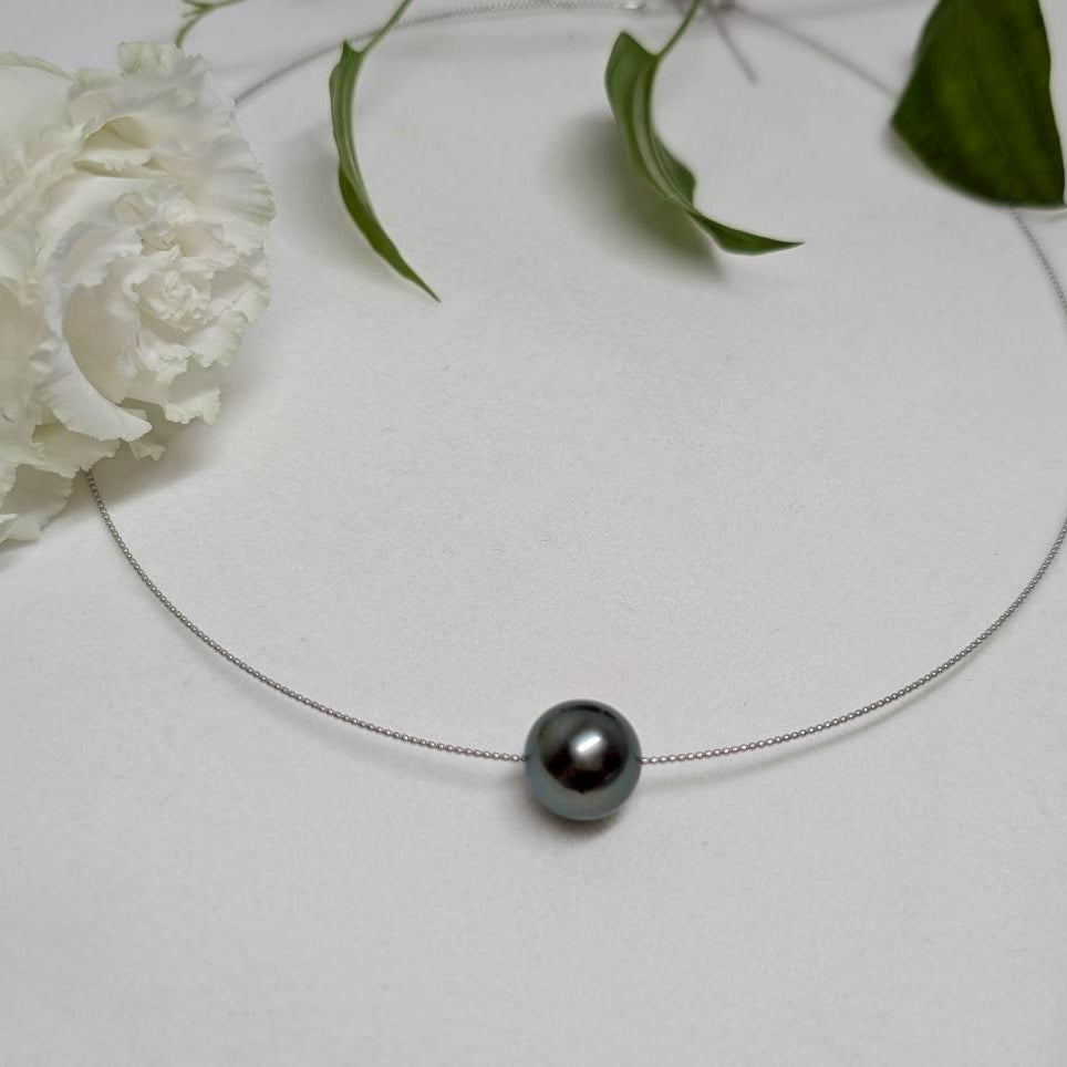 黒蝶真珠の深い輝きが際立つ、12mm〜12.5mmのラウンド形状が美しいオメガネックレスです。シンプルなデザインとK18ホワイトゴールドの上品なチェーンが調和し、繊細でエレガントな首元を演出します。特別な日にも日常使いにも適した、洗練された逸品です。