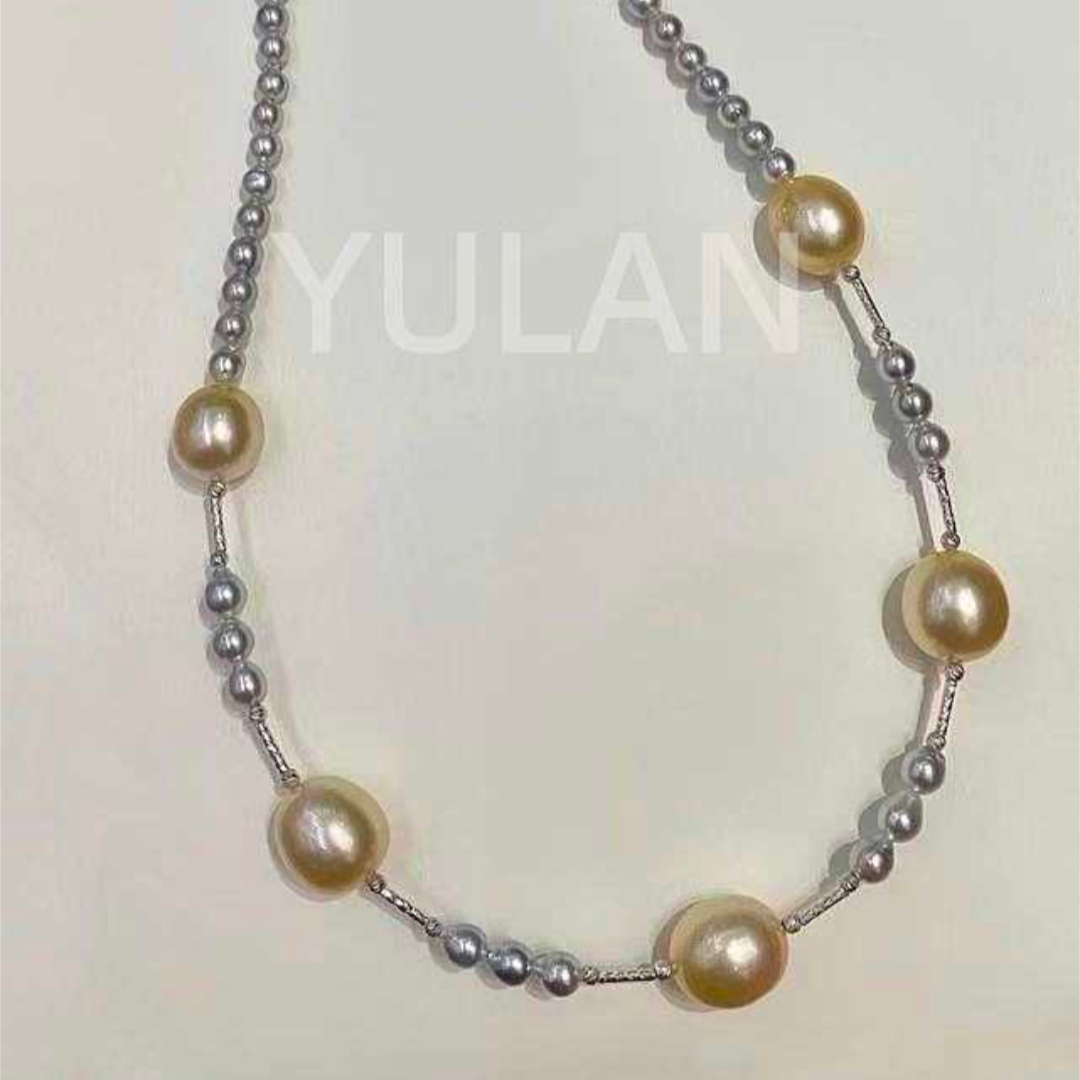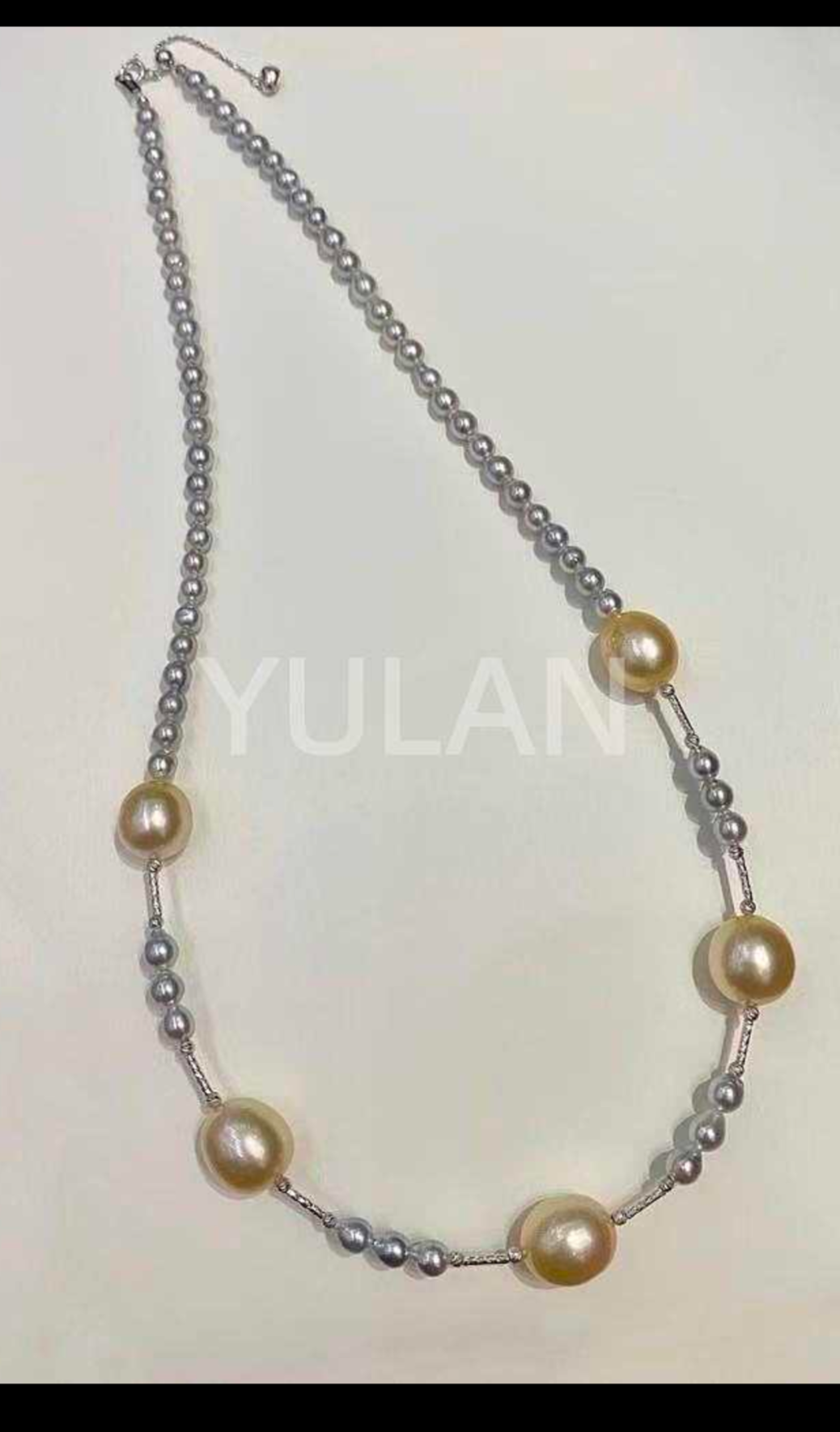 ゴールドとシルバーの真珠がエレガントなネックレス