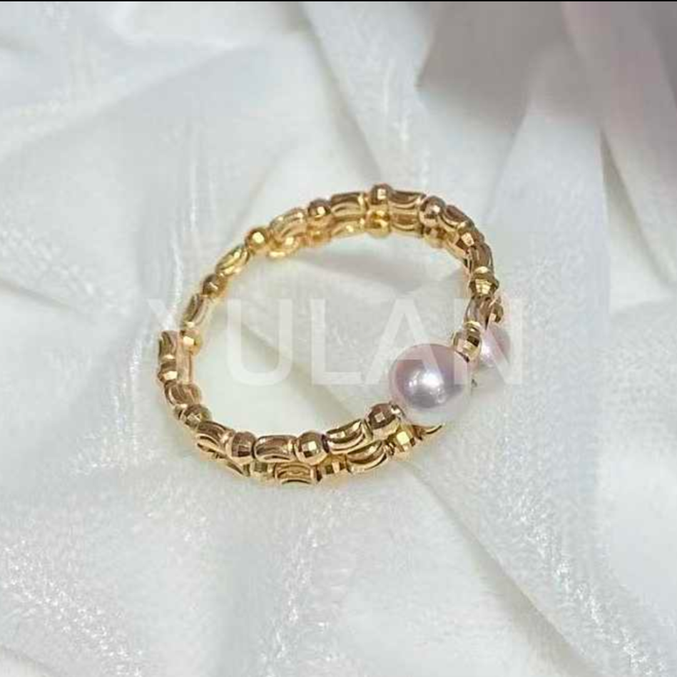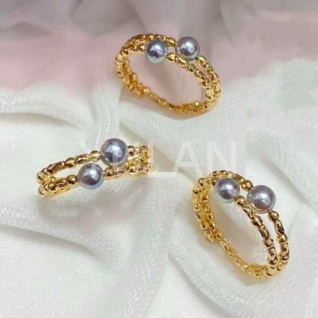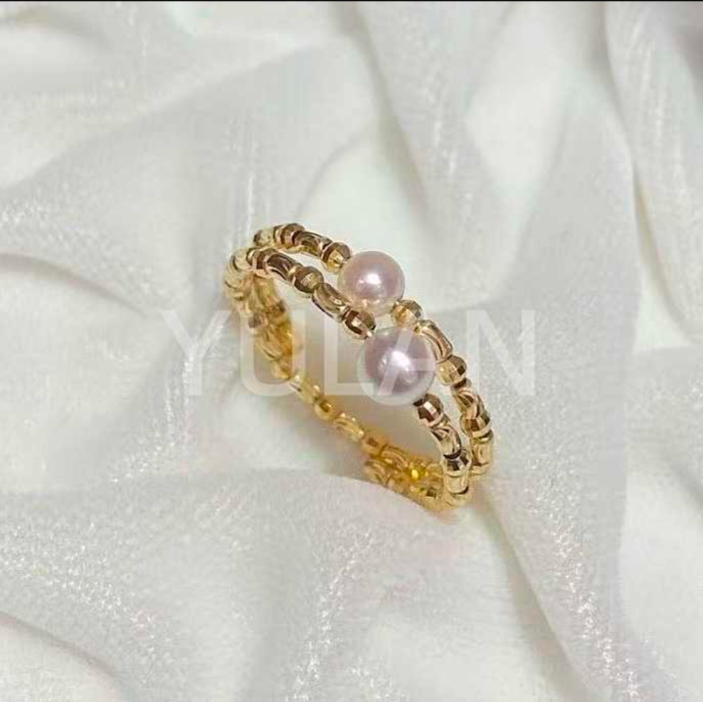 アコヤ真珠をあしらったゴールドダブルリングは、洗練された輝きを放ちます。二連のリングが織りなす優雅なデザインが、上品な指先を演出。特別な日から日常まで、あらゆるシーンで格調高いアクセントとしてお楽しみいただけます。豊かな光沢と確かな品質が、長く愛される逸品です。
